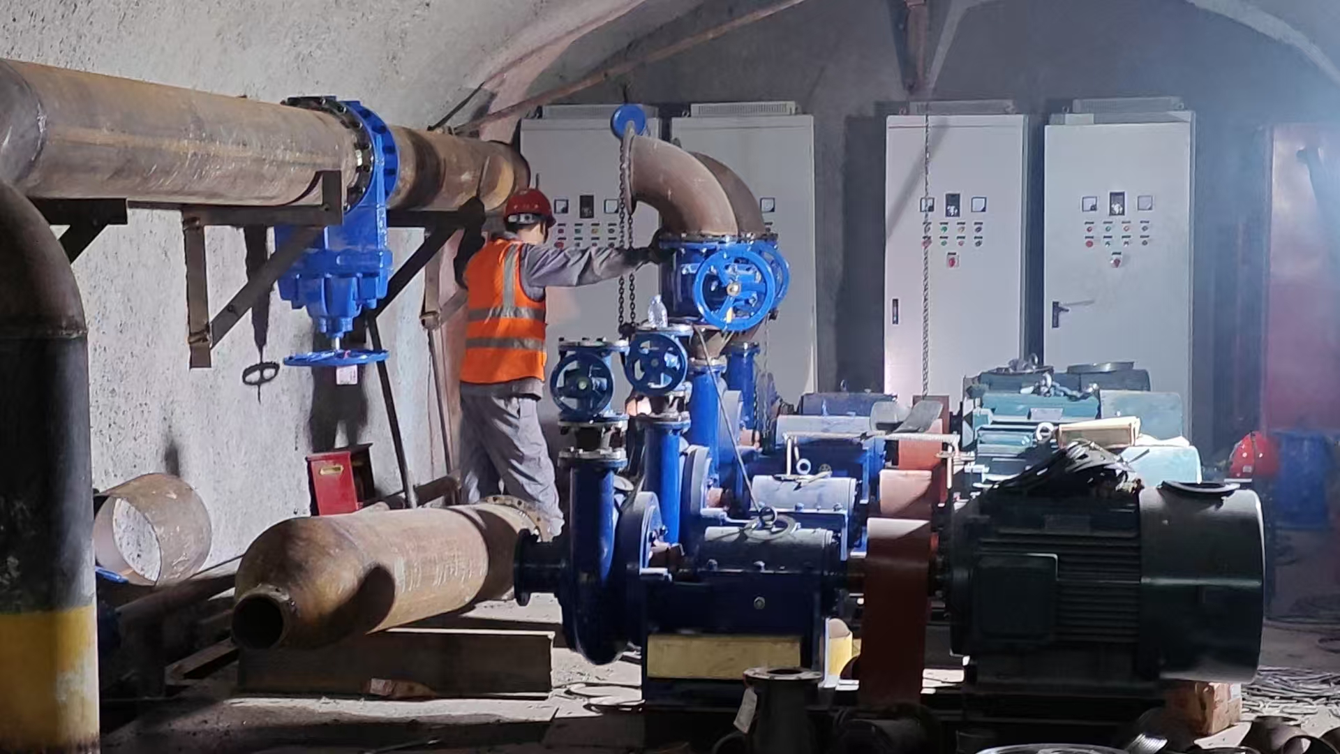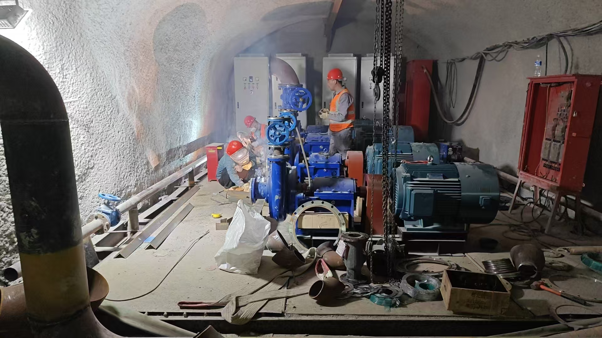 根據(jù)鐵路隧道的工程進度,第三批主排水泵已進場完畢,立即投入緊張的安裝工作。第三批主排水泵清水泵功率為90KW 4臺,污水泵功率為75KW 4臺,共計8臺,為不耽誤工程整體進度,安裝工作設備進場立即開始,預計將按期完成安裝工作,在端午節(jié)后開始調(diào)試。